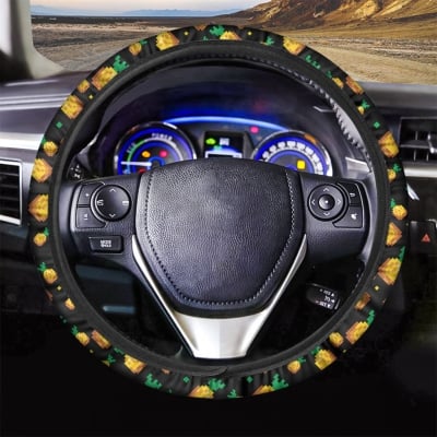 8-Bit Pixel Pineapple Print Car Steering Wheel Cover