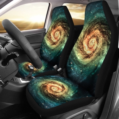 Green Yellow Spiral Galaxy Space Print Universal Fit Car Seat Covers